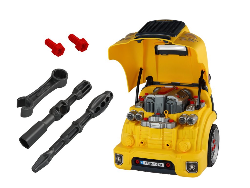 Není to jen vozidlo, ale také mobilní dílna, která vtáhne každého malého kutila do fascinujícího světa oprav a konstrukcí Hlavním rysem této sady jsou její četné mechanické funkce, které umožňují interaktivní učení a zábavu