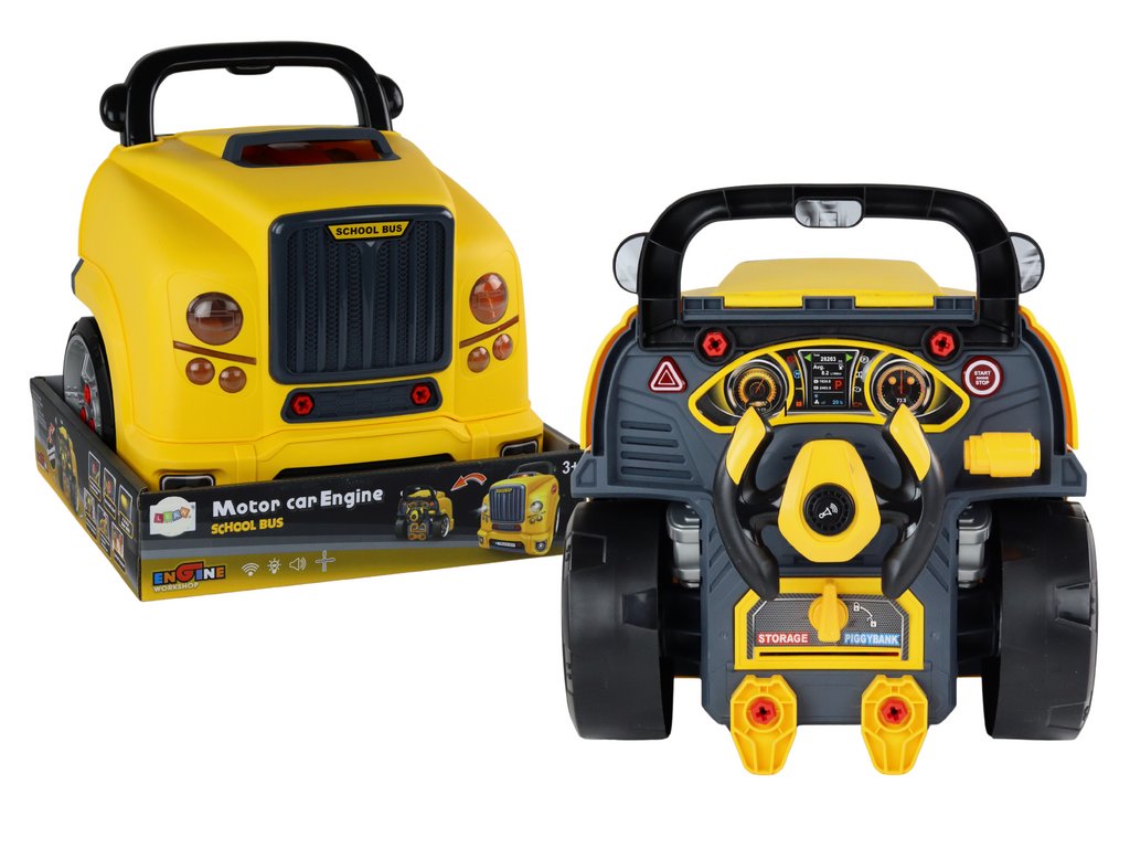 Sada pro kutily Bus pro rozebrání Sada pro kutily Žlutý autobus Sada pro kutily pro děti je žlutý autobus, který není jen hračkou, ale také nástrojem pro rozvoj mechanických schopností a kreativity nejmenších Autobus má mnoho mechanických funkcí, které umožňují dítěti rozebírat a skládat nové části vozidla, což podněcuje představivost a rozvíjí manuální dovednosti
