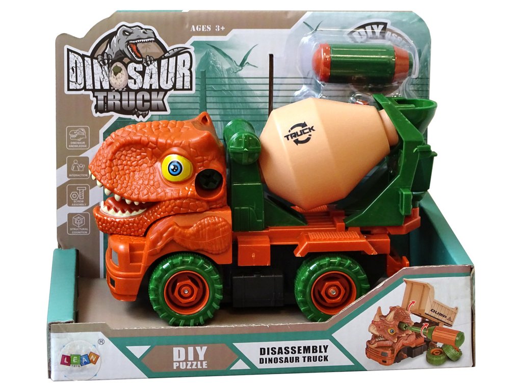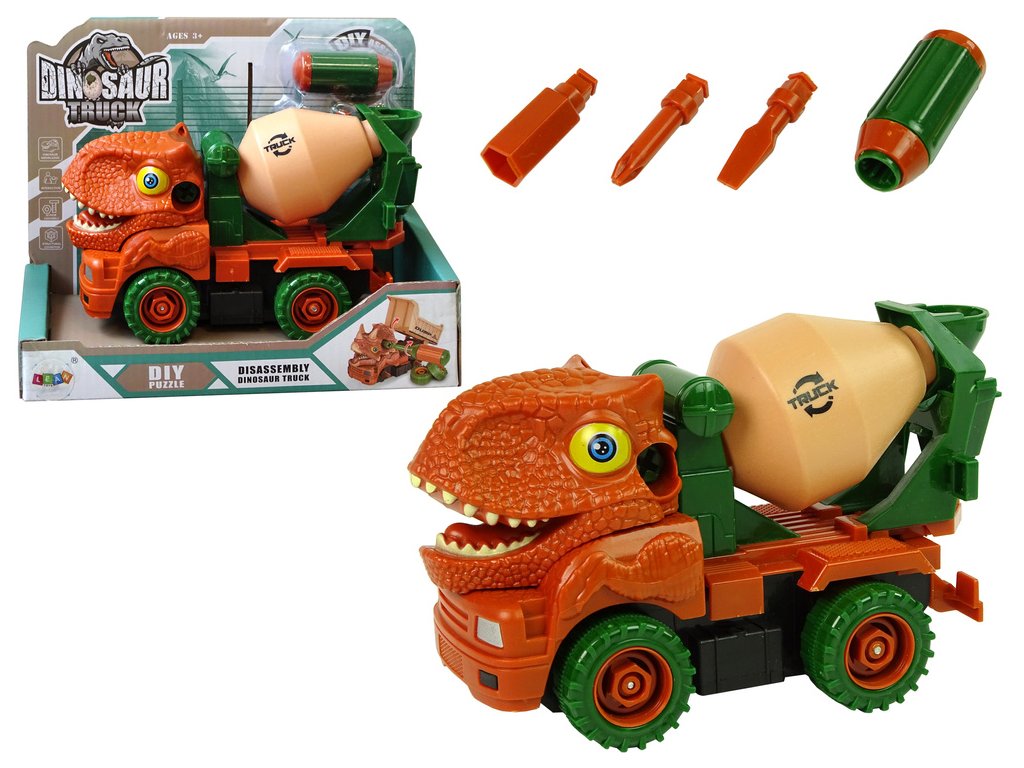 - Nákladní auto s míchačkou na beton Dinosauří stavebnici v oranžové barvě Dinosauři, kutilství a stavební autíčka jsou věci, které zajímají všechny kluky