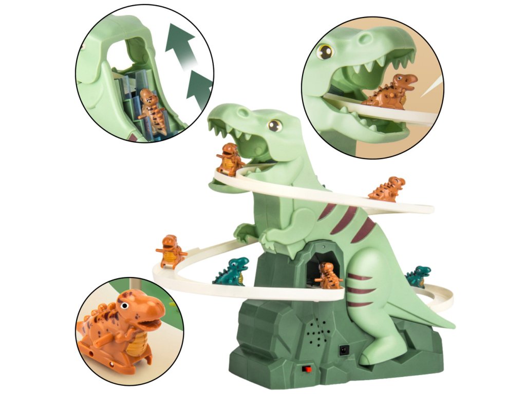 Díky pečlivě navrženému mechanismu se dinosaurus automaticky stoupá po dráze a poté sjíždí dolů, což dětem poskytuje fascinující zážitky a nekonečnou zábavu Barevná světla a dynamická hudba dále obohacují smyslové vjemy a dělají zábavu ještě více angažující
