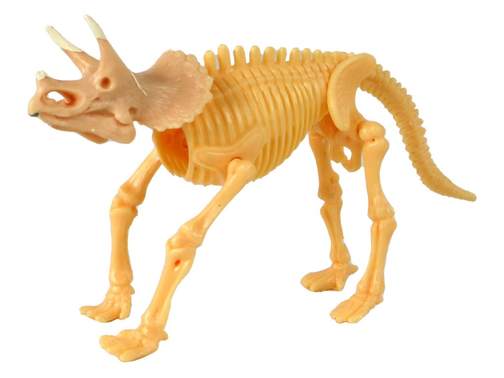 - Uvnitř se nachází náhodný model plastového žlutého kostry dinosaura, jehož sestavení přináší další zábavu