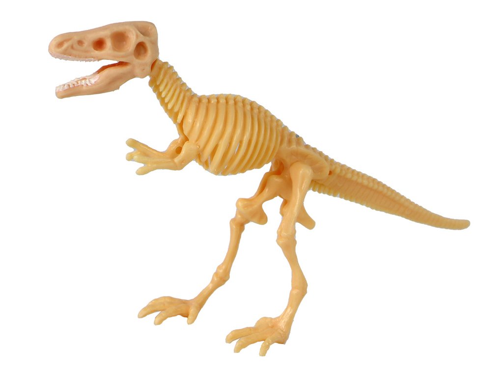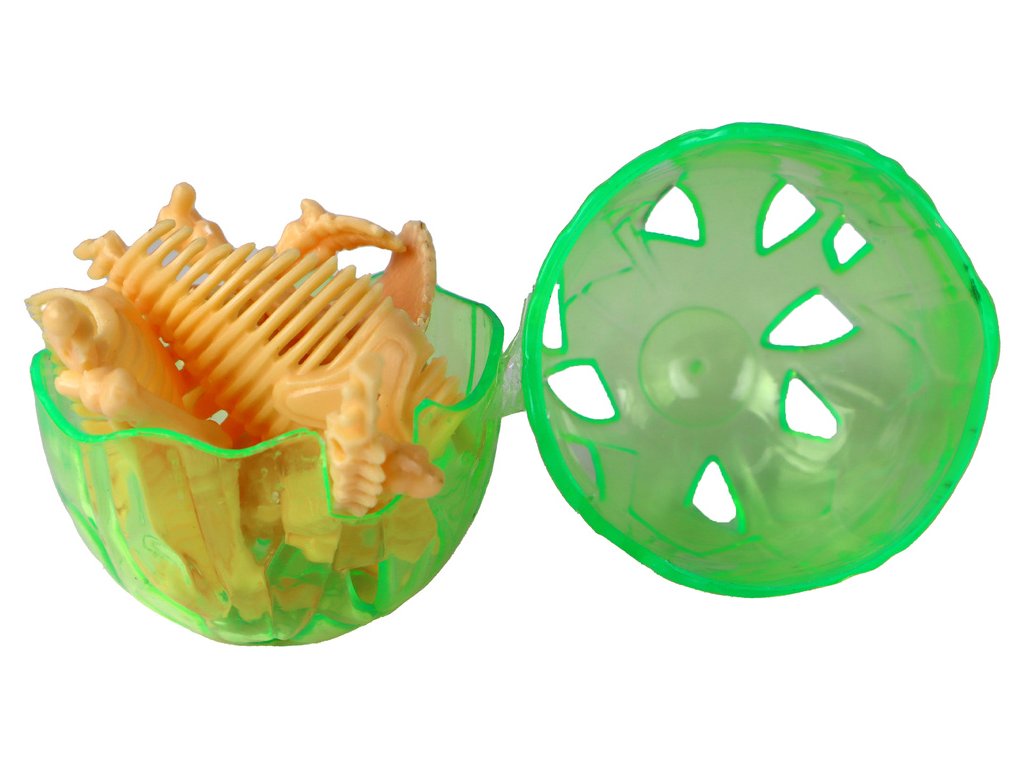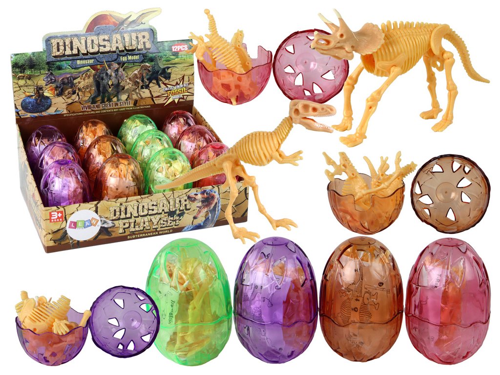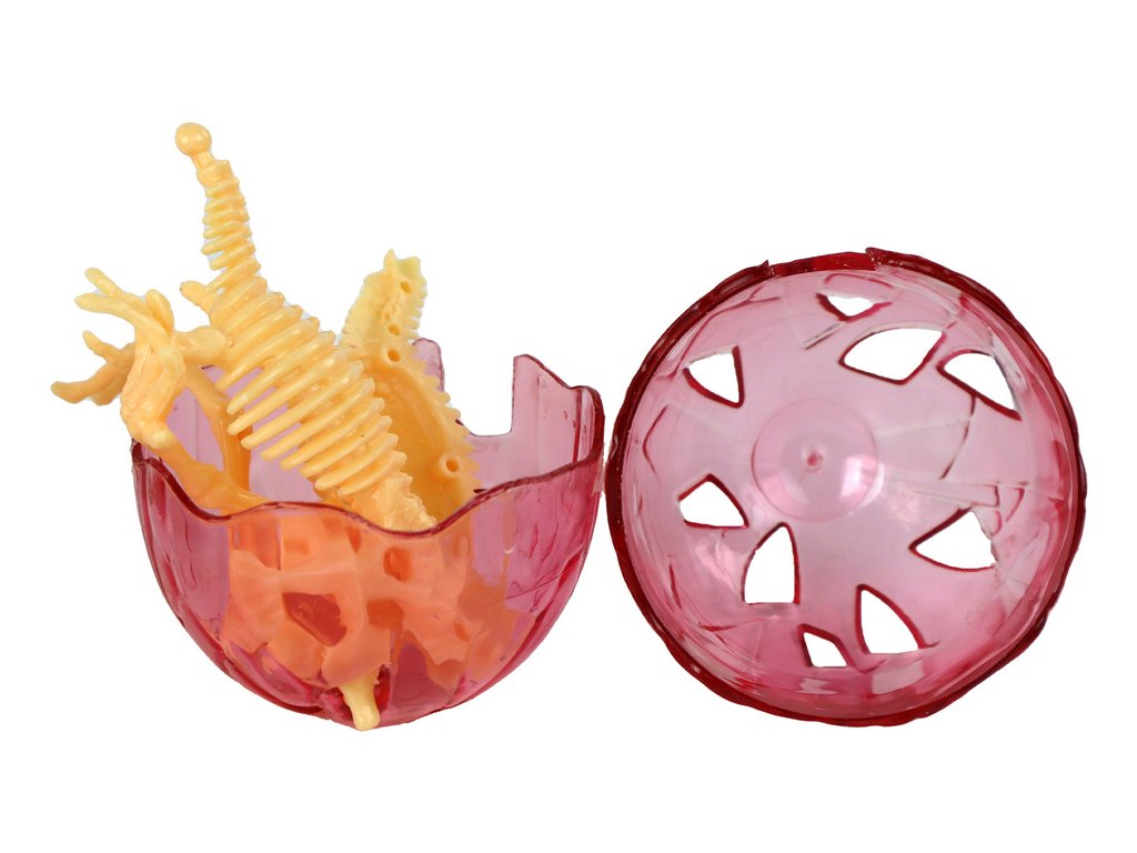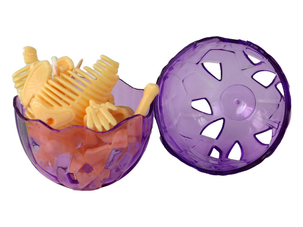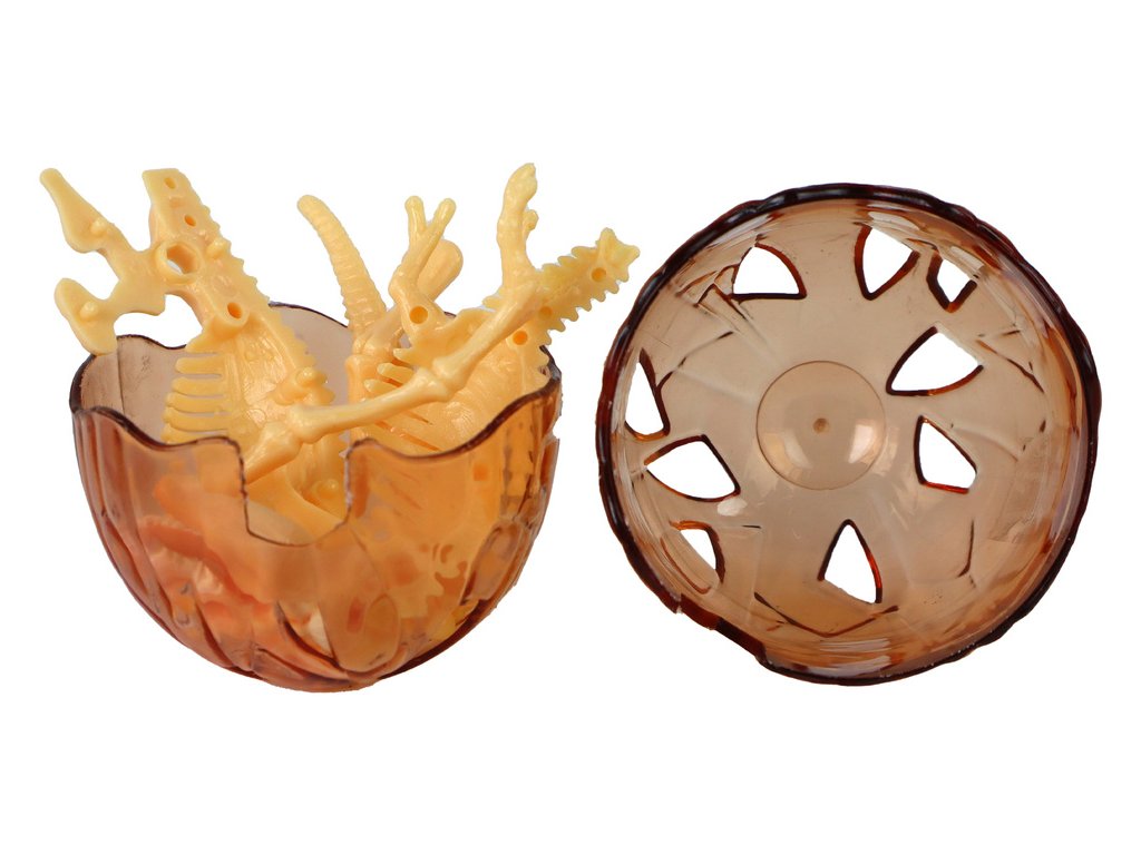 Uvnitř se nachází náhodný model plastového žlutého kostry dinosaura, jehož sestavení přináší další zábavu Je to hračka, která procvičuje motorické dovednosti, pohybovou koordinaci a koncentraci