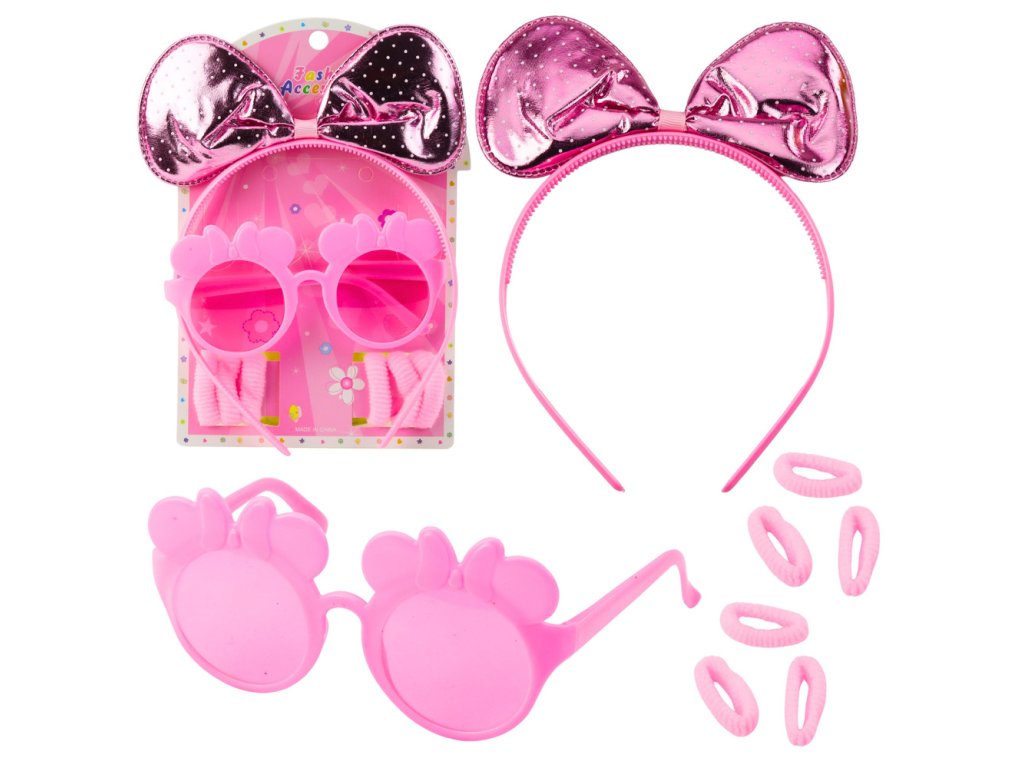 Dívčí Sada Krásy: Čelenka s Mašlí, Brýle a Růžové Gumičky