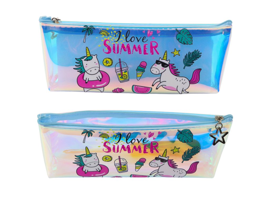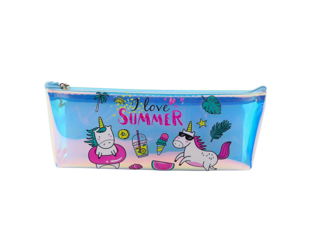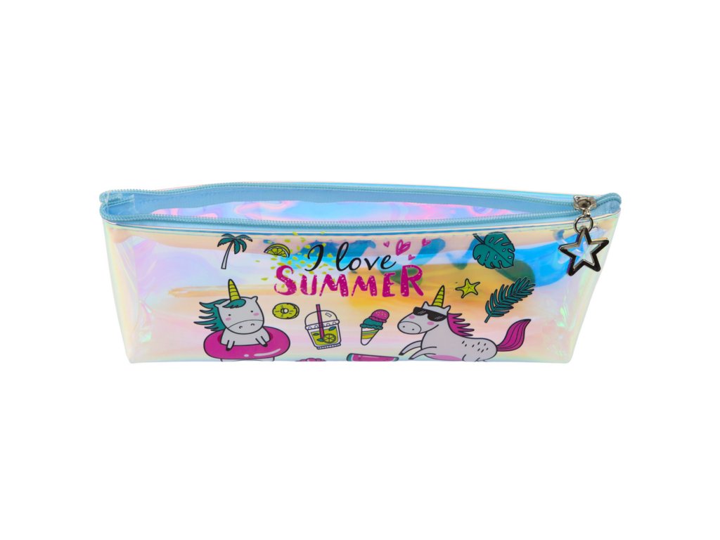 Dívčí školní penál holografický je okouzlující a praktický doplněk pro všechny milovnice letních motivů a jednorožců.