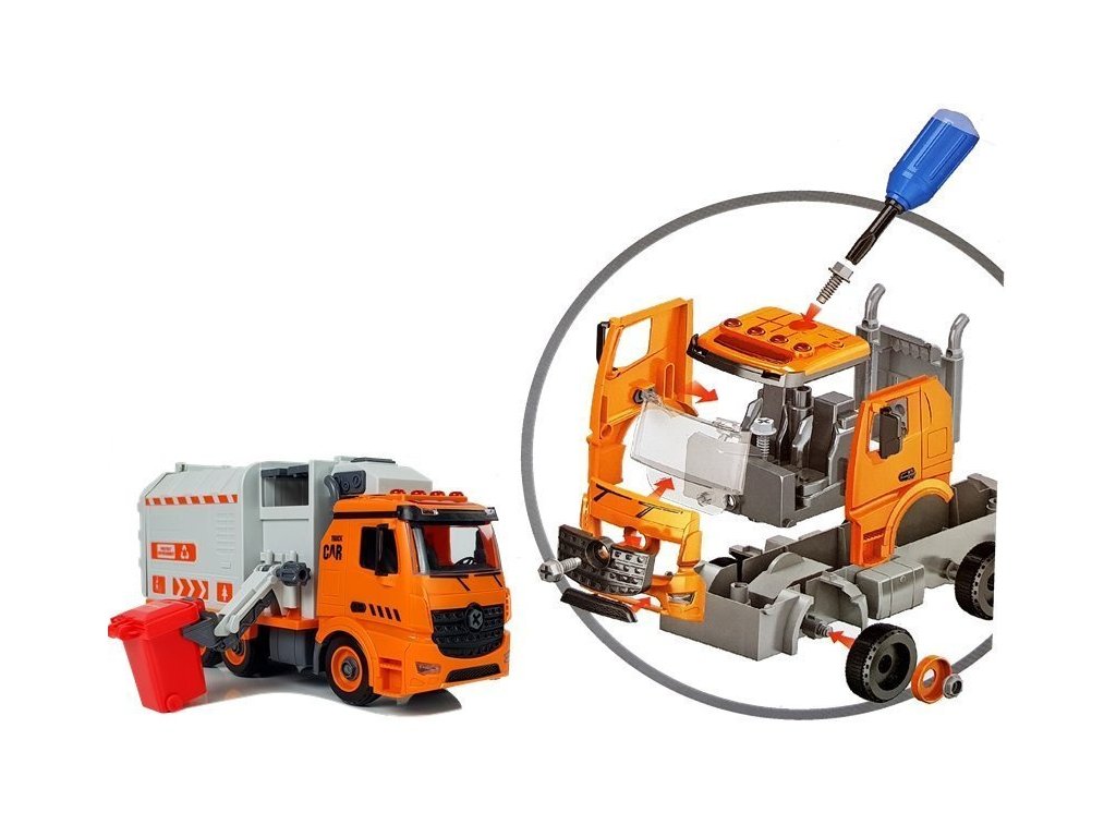 - DIY sada Popelářské auto Třídění odpadu Hra Šroubovák Zvukové efekty Světelné efekty Oranžovo-šedá popelářská auto zajistí všem chlapcům dlouhé hodiny plné skvělé zábavy