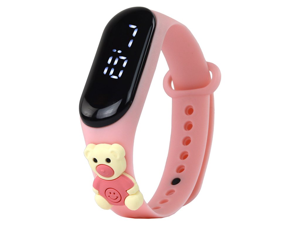 Hodinky s dotykovým displejem Medvídek růžový Nastavitelný řemínek Roztomilý dotykový hodinky s motivem medvídka na růžovém řemínku Tyto moderní hodinky byly vytvořeny s ohledem na nejmladší uživatele a kombinují funkčnost s zábavným a barevným stylem