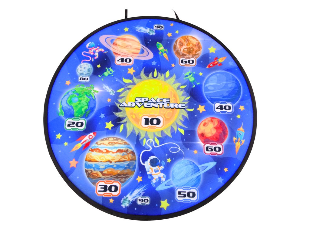 Kosmická dovednostní hra: deska, pistole, šipky, kuličky je jedinečná sada pro děti, které chtějí objevovat tajemství vesmíru a hrát roli kosmických hrdinů Ústředním prvkem sady je velká deska vyrobená z odolného materiálu, zdobená fascinujícími kosmickými motivy jako jsou planety a galaxie