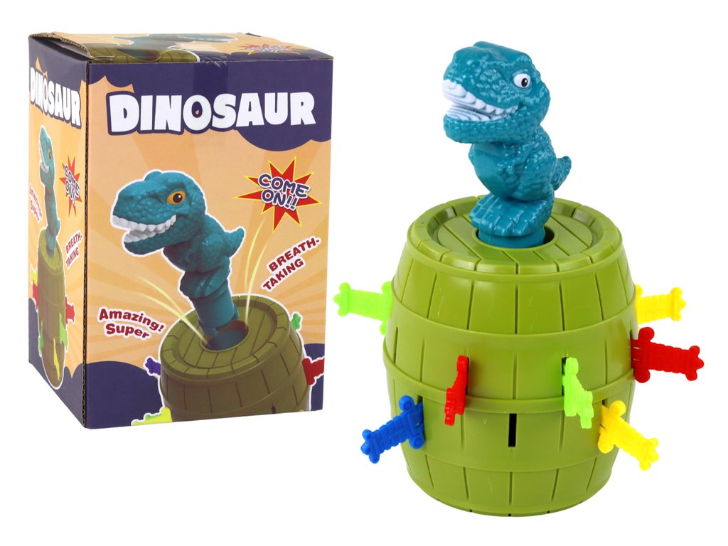 Skákající Dinosaurus v Sudu je zábavná a vzrušující dovednostní hra, oblíbená u celé rodiny, a to i pro děti od 3 let. Sada obsahuje všechny potřebné prvky k zahájení hry, jako je zelený sud, modrý dinosaurus a 16 pestrobarevných mečů. Pravidla hry jsou snadno pochopitelná, což ji činí skvělou zábavou jak pro děti, tak pro dospělé. Hra začíná vložením malého dinosaura do sudu. Poté si hráči postupně vkládají barevné meče do otvorů v sudu, snaží se přitom nezpůsobit vystřelení dinosaura.