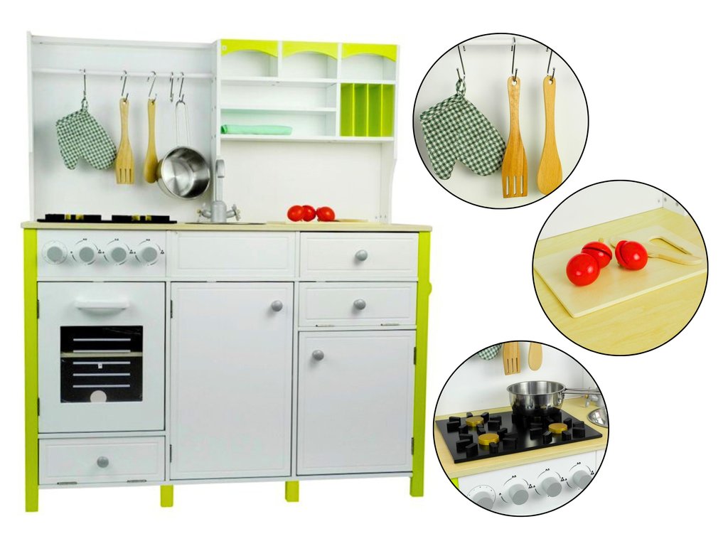 - Objevte kouzlo světa kulinářských dobrodružství s naší Dřevěnou Dětskou Kuchyňkou Zeleno-Bílou Paula