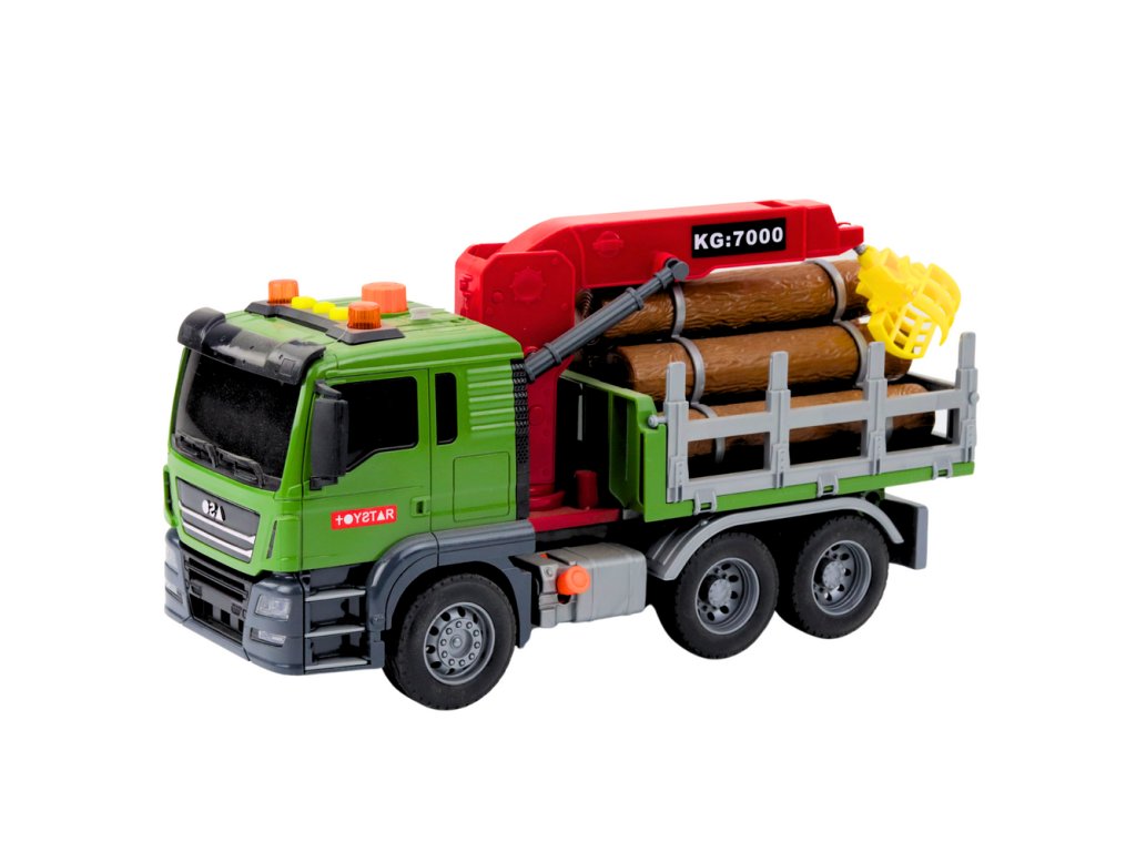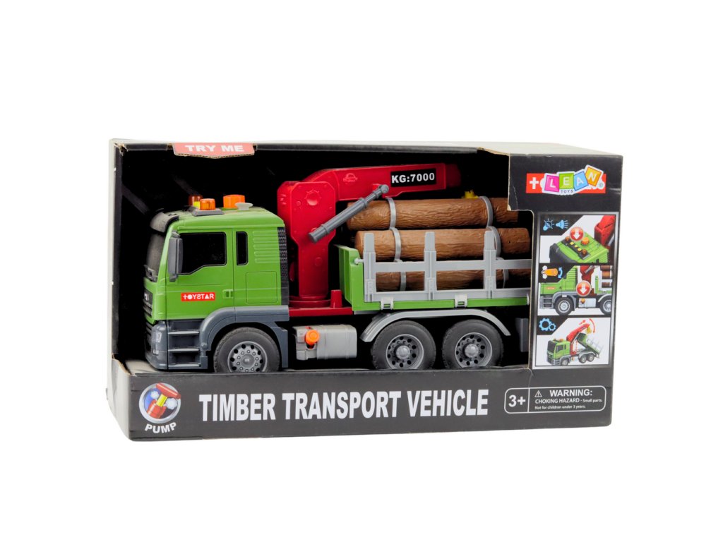 - Dřevěná Dopravní Kamionová Jeřábová Hračka Světla Zvuky je elegantní a robustní kamion pro transport dřeva, který je dokonalou hračkou pro každého malého fanouška velkých strojů