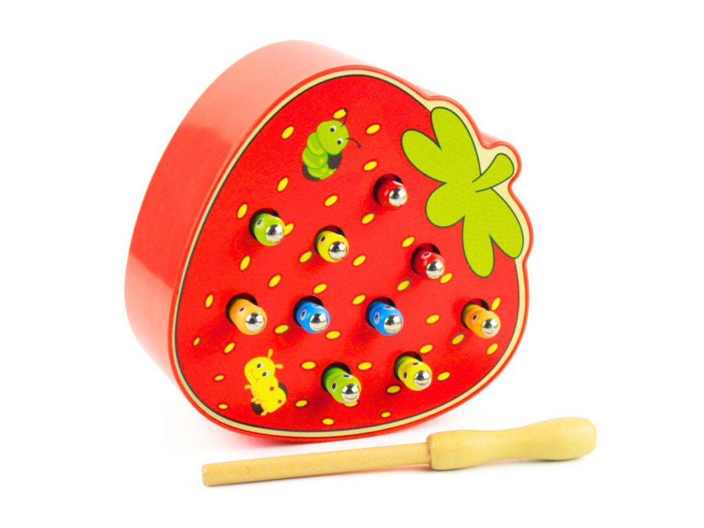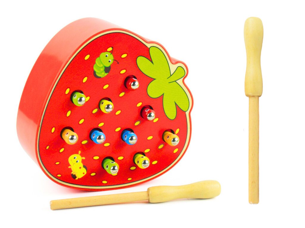 Dřevěná Dovednostní Hra Chyť Červíka Červená Jahoda