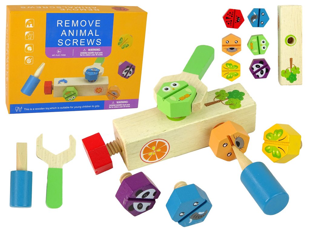 Sada pro kutily Dřevěné šroubování Šrouby Hračka Dřevěná sada pro kutily potěší každého malého kutila Dítě se naučí základní činnosti spojené s opravami a bude napodobovat domácího kutila