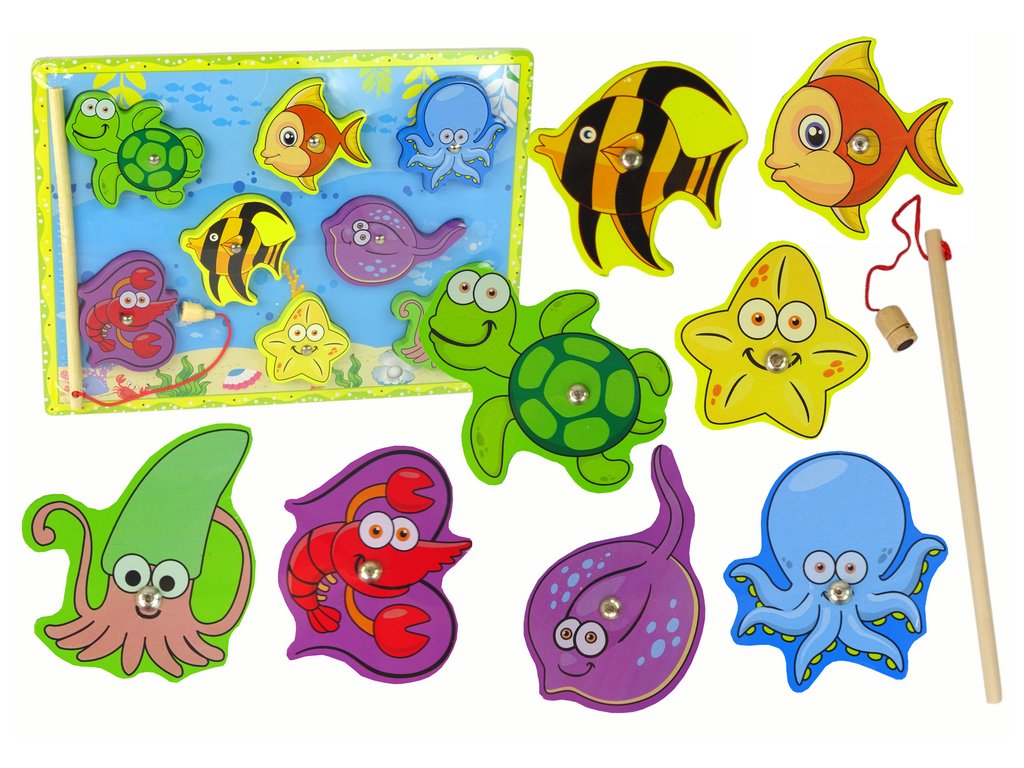 - Dřevěná sada na rybaření s barevným magnetem Hračka je vzdělávací sada vyrobená ze dřeva, která povzbuzuje děti k objevování mořského světa