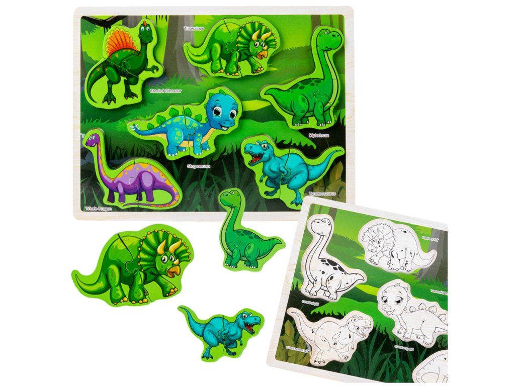 Dřevěná Skládačka Dinosauři Puzzle Tvary Deska 12Kusů
