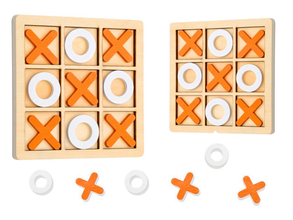 - Dřevěná hra piškvorky je klasická, strategická zábava pro dva hráče, ideální pro rozvoj intelektuálních dovedností dětí