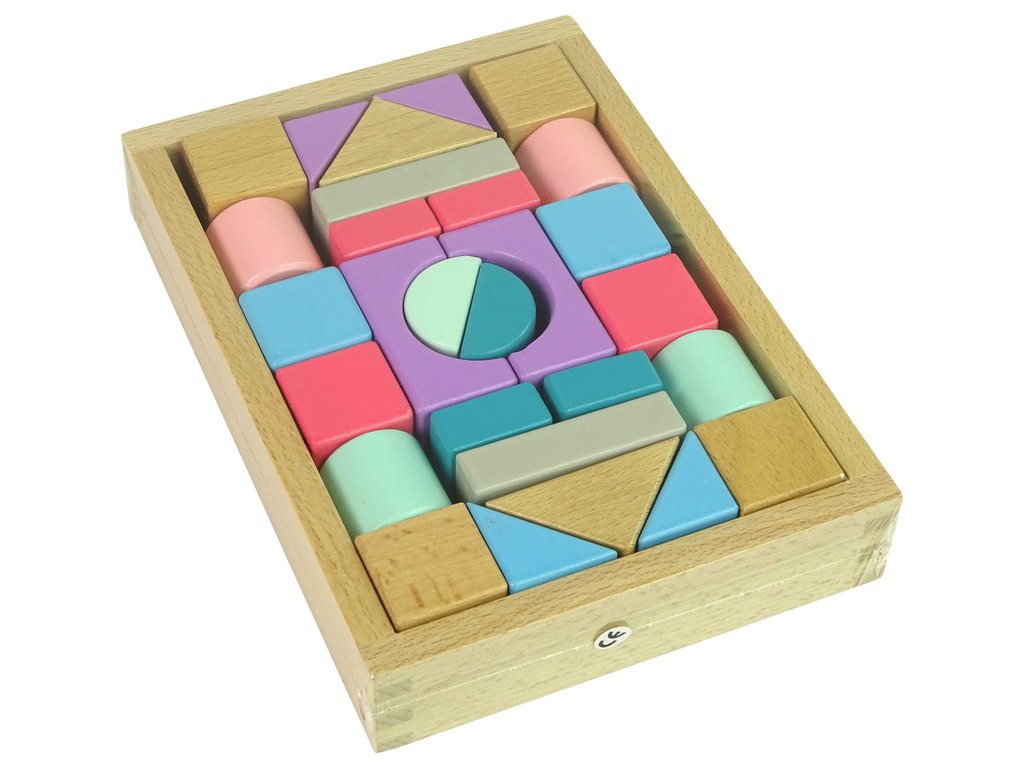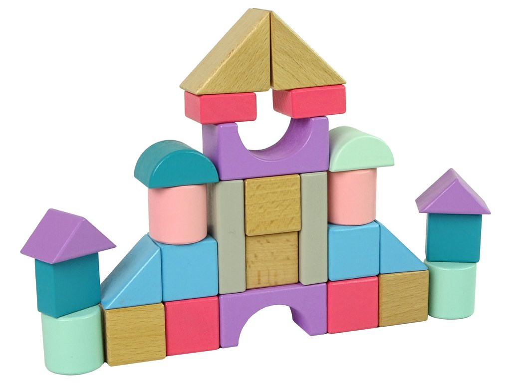 Dřevěné kostky pastelové barvy 28 dílů hrad Nadčasová hračka, se kterou si hráli naši prarodiče, rodiče, my a nyní i naše děti.