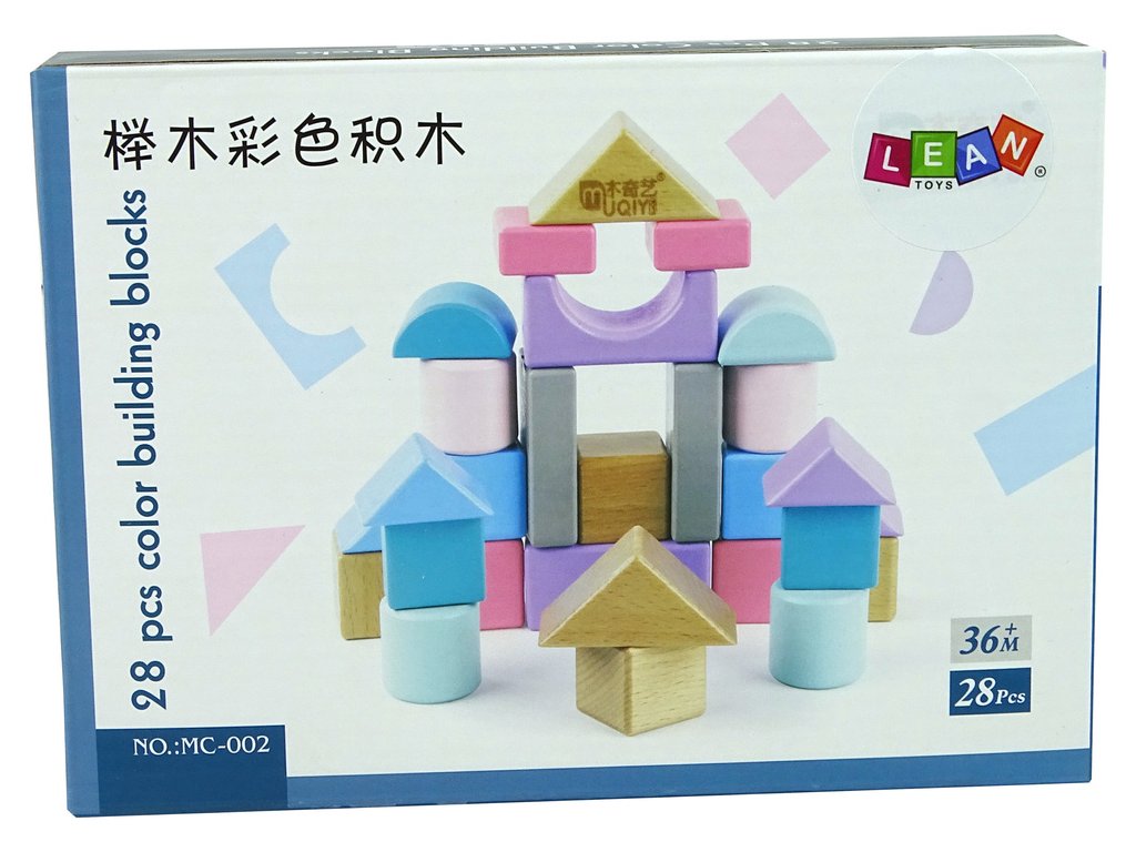 - Dřevěné Kostky Pastelové Barvy 28 Kusů Hrad Stavby