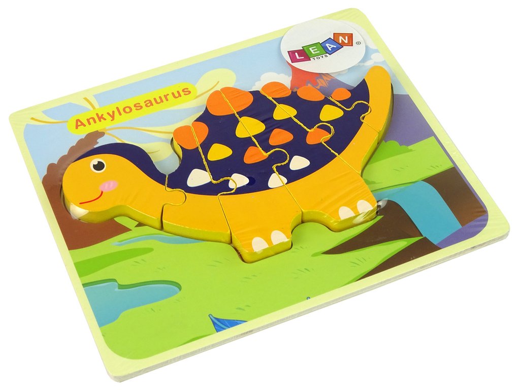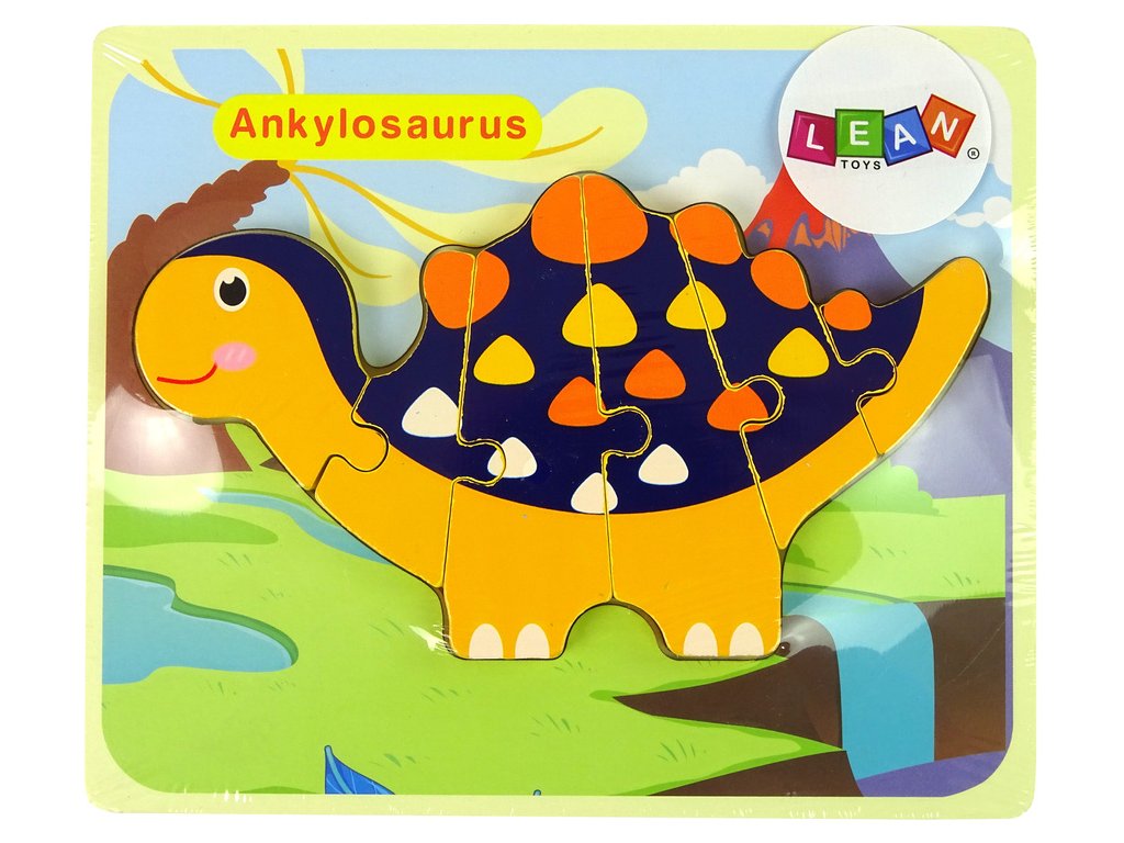 Dřevěné puzzle dinosaury Triceratops Ankylosaurus oranžové Puzzle, které učí, jsou ideální kombinací.