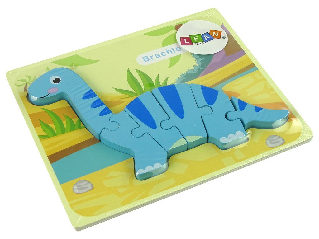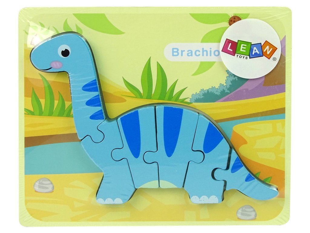 Dřevěné puzzle dinosaurus Brachiosaurus modrý Puzzle, které učí, jsou ideální kombinací.