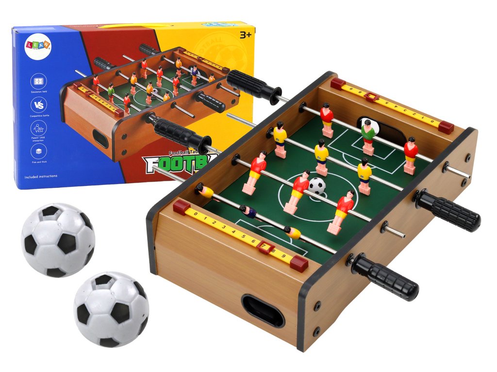 - Mini stolní fotbal z dřeva 36 cm x 21,5 cm x 9 cm Miniaturizovaná verze legendární stolní hry