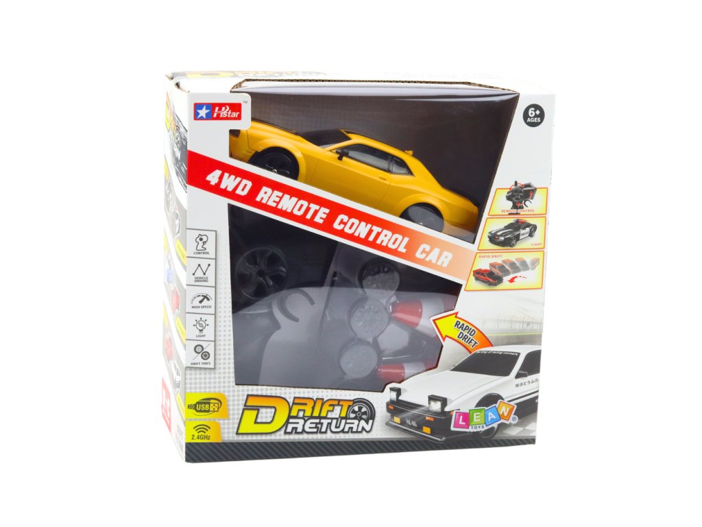 Driftovací RC auto 4WD žluté s černými pruhy Zdalně ovládané driftovací auto 4WD je dynamická a přesná hračka, která poskytuje nezapomenutelné emoce během jízdy.