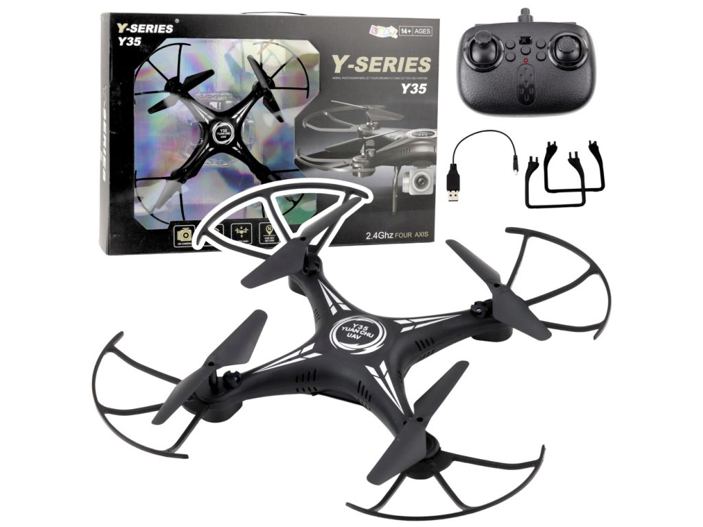 Dron Y-35 je lehký a obratný kvadrokoptéra, která dokonale vyhovuje jak začátečníkům, tak pokročilejším uživatelům Díky vestavěnému gyroskopu a systému stabilizace letu přístroj poskytuje plynulé manévrování a přesnou kontrolu i v náročnějších podmínkách