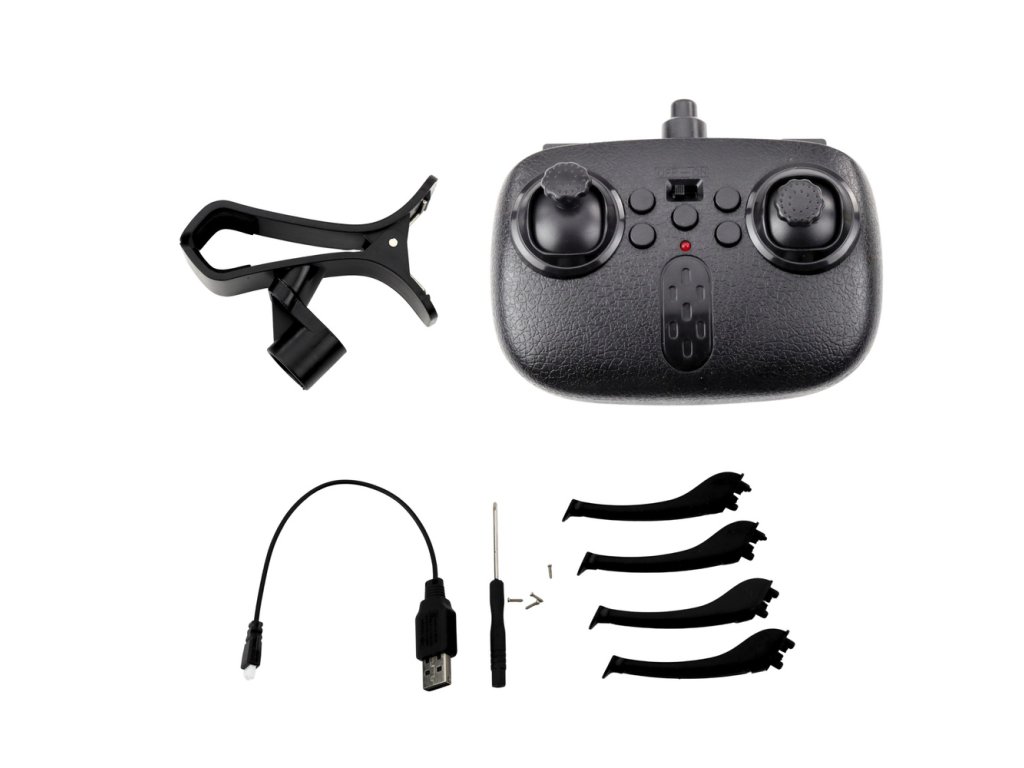 - Model je vybaven 6-osým gyroskopem, funkcí automatického vznášení, startem/přistáním na jedno tlačítko a funkcí automatického návratu k pilotovi