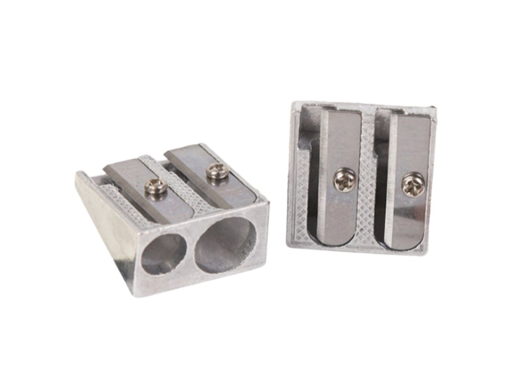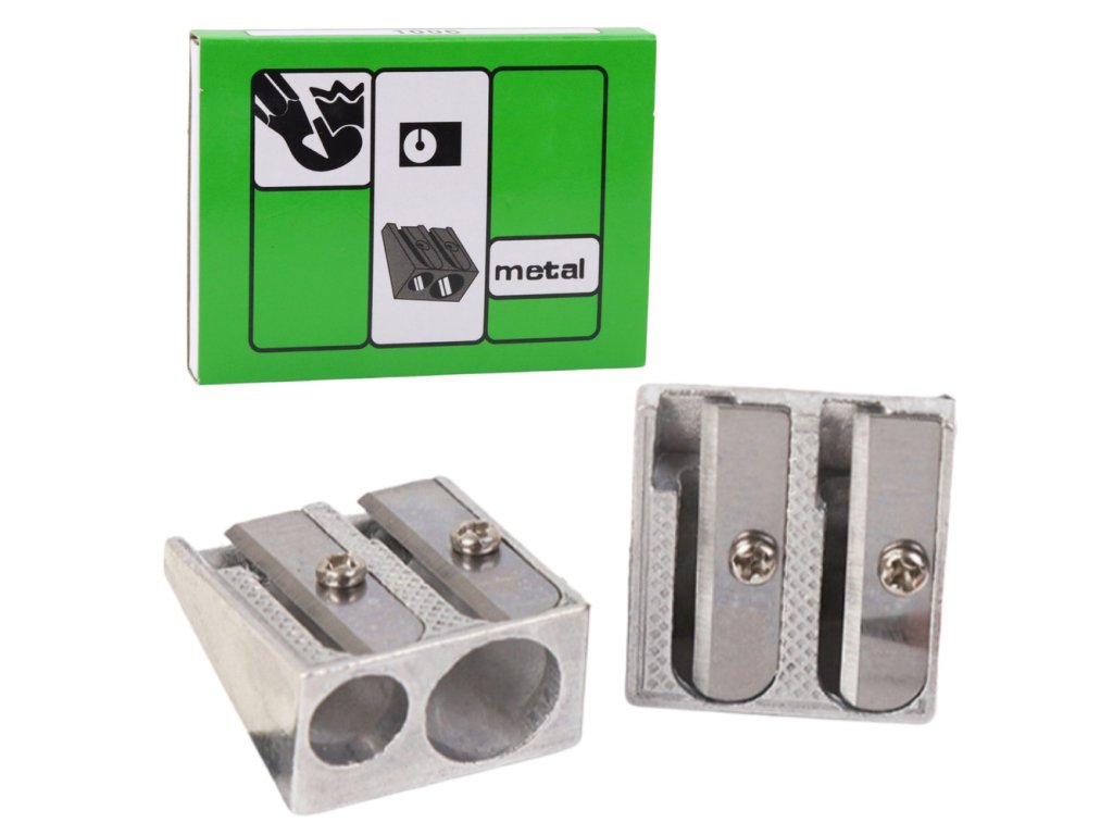 Kovové dvouotvorové ořezávátko je spolehlivý školní a kancelářský nástroj, určený k ořezávání tenkých a tlustých pastelek a tužek.