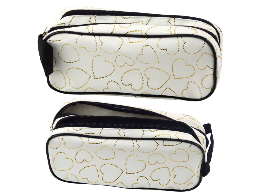 Dvoukomorový Školní Pouzdro Bílé se Zlatými Srdci 23,5x10 cm