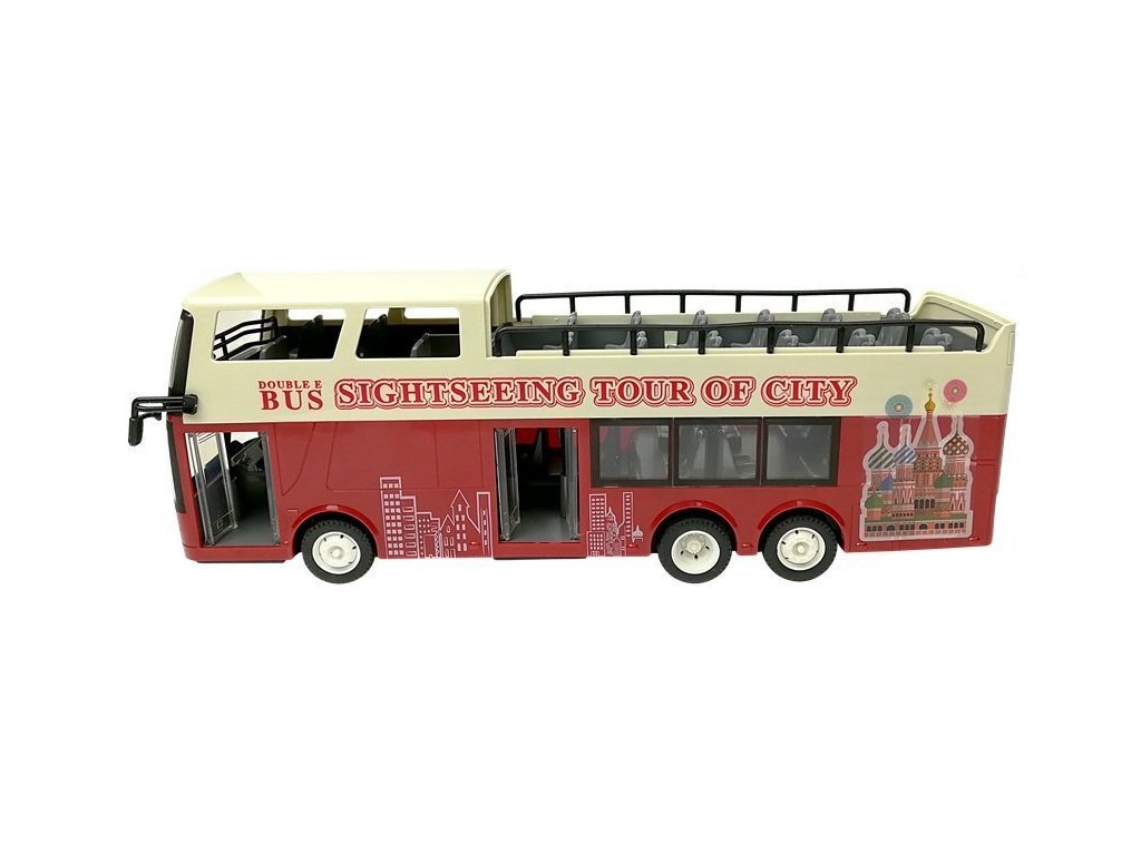 Přemýšlíte nad dokonalým dárkem pro dítě, které miluje klasické, dvoupatrové autobusy? Představujeme vám dvoupatrový autobus na dálkové ovládání ve skále 1:18, který vypadá úžasně realisticky. Tento zábavný model podporuje správný rozvoj dovedností, jako je ovládání hračkového autobusu, posiluje koncentraci a rozvíjí manuální zručnost. Další výhodou je možnost otevírání dveří pomocí ovladače. Autobus nabízí zvukové i světelné efekty a pracuje na frekvenci 2.4 GHz. Sada obsahuje bariérky, díky nimž lze rychle přeměnit horní část na autobus bez střechy. Měkká, gumová kola zajišťují skvělou přilnavost na různých površích. Ovladač umožňuje plné řízení autobusu, všechny úkony malého řidiče jsou bez námahy a úplně pod kontrolou.