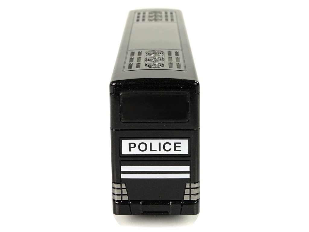 - Dvoupatrový černý policejní autobus se zvukem Váš malý kluk pořád mluví o tom, že chce být policistou?