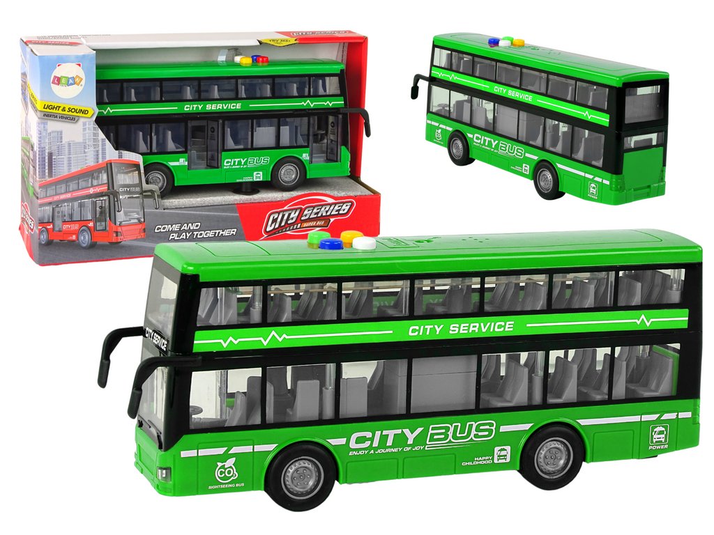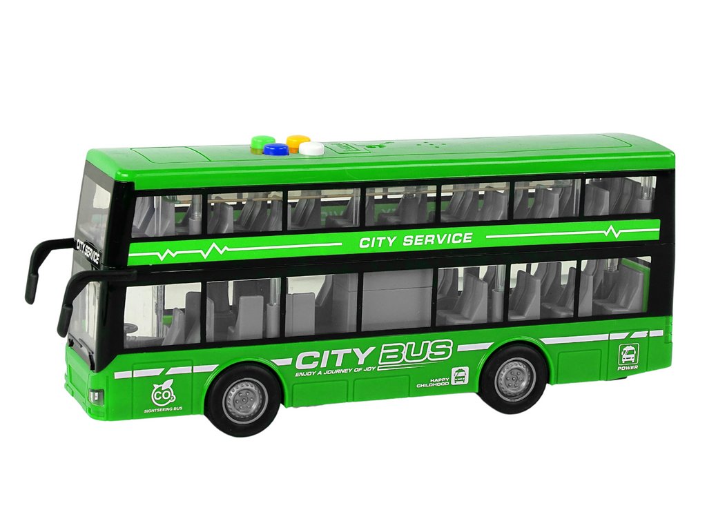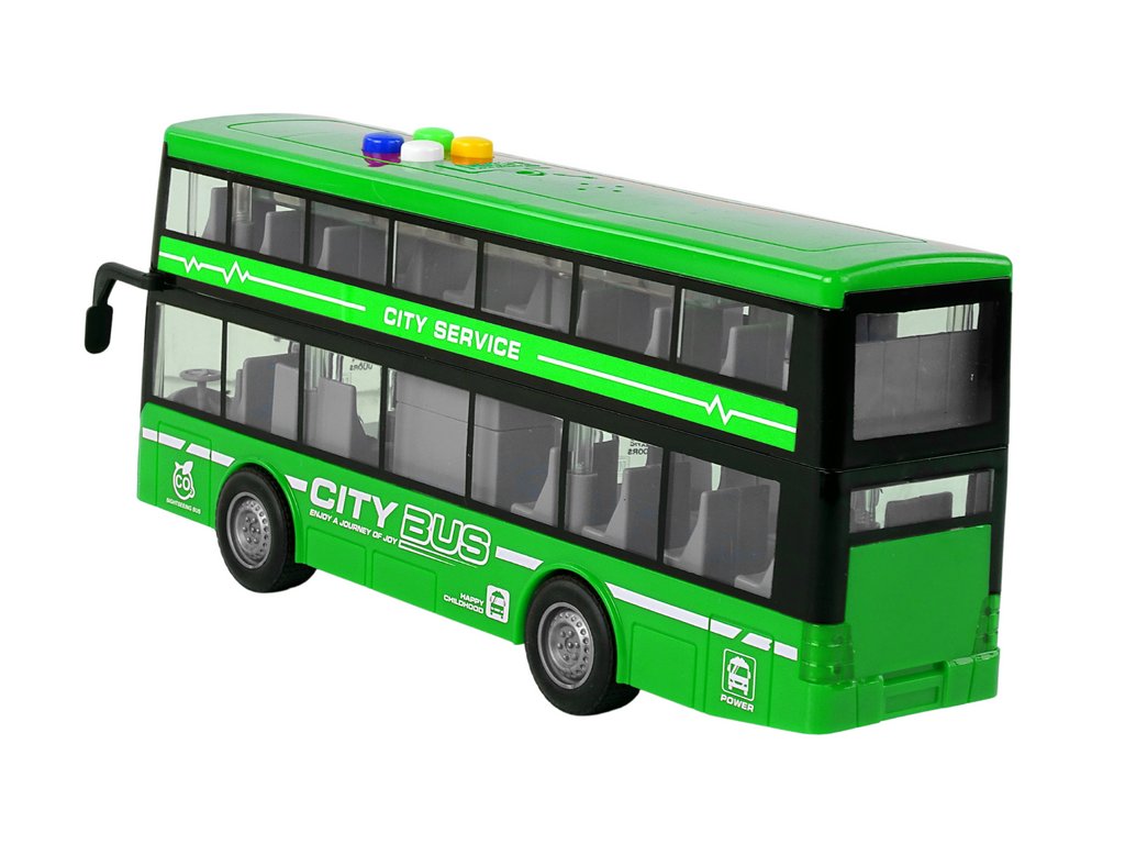 - Dvoupatrový autobus na baterie, světla, zvuky, frikční pohon, zelený Neobyčejný dvoupatrový autobus, který jistě potěší děti i milovníky veřejné dopravy