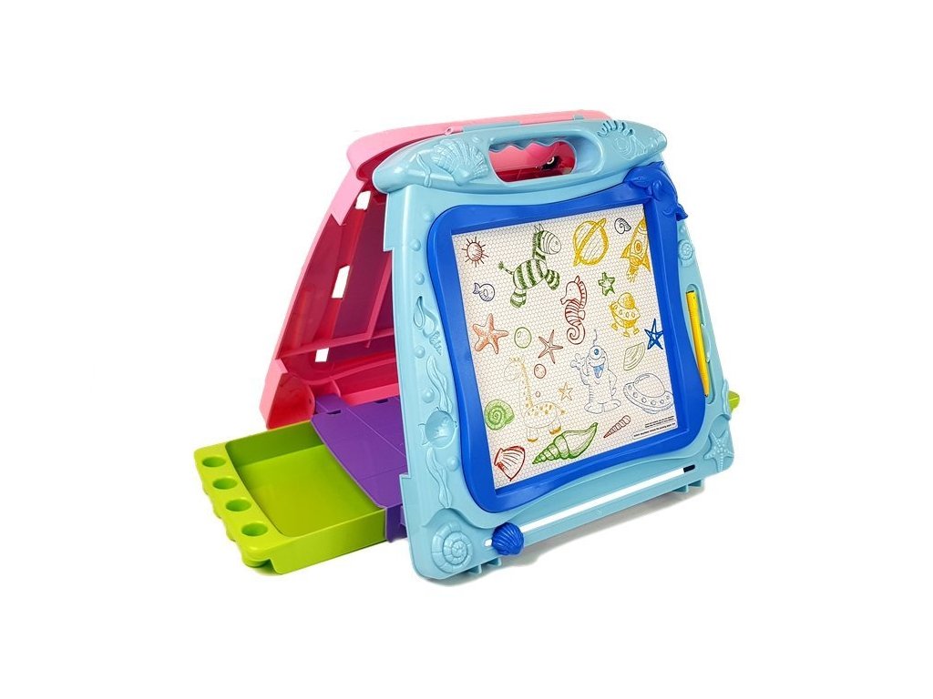 Oboustranná tabule na kreslení Multifunkční tabule s možností kreslení na obou stranách potěší každého malého umělce, který miluje kreslení, a navíc může pozvat svého kamaráda na společnou zábavu Rozvíjí představivost, výtvarný talent a možná se z něj v budoucnu stane malíř