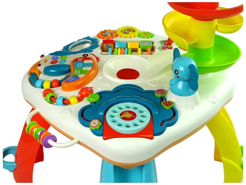 Edukační stolek Skluzavka pro Míčky Pianinko Koš Zubatá Kola je nejen fascinující interaktivní hračkou, ale také jedinečnou pomůckou pro rozvoj dovedností vašeho dítěte Tato hračka kombinuje dva světy