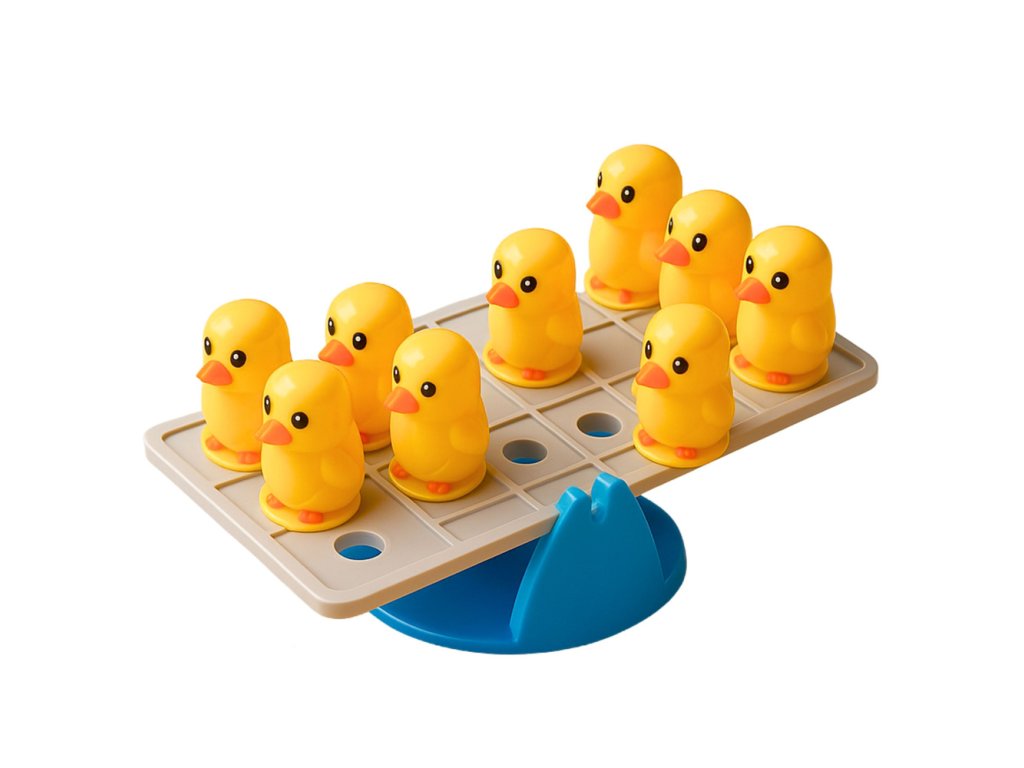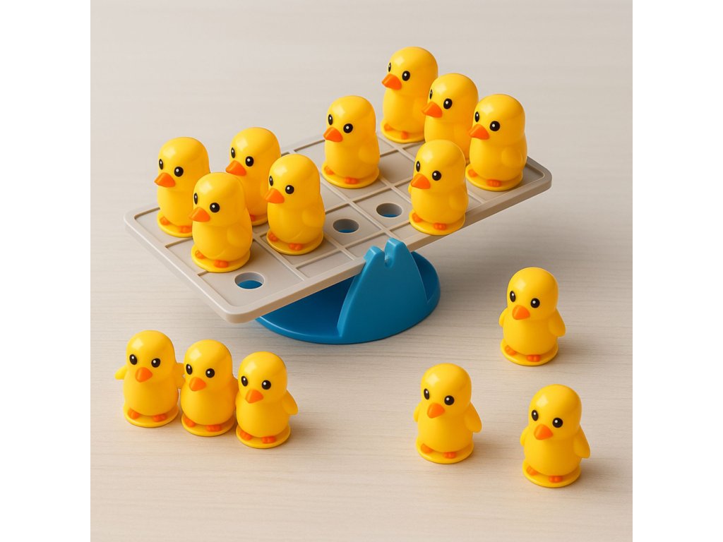 Objevte kouzlo hraní s naší hračkou Balansující Kachničky, ideální volbou pro zábavné a vzdělávací aktivity vašich dětí! Tato edukační hračka rozvíjí u dětí logické myšlení, manuální dovednosti a koncentraci, zatímco si hrají. Cílem hry je umístit figurky kachniček na obě strany balancující základny tak, aby se celé zařízení udrželo v rovnováze. Každý další prvek ovlivňuje stabilitu, což vyžaduje od dětí schopnost pozorování, plánování a předvídání účinků dalšího pohybu.