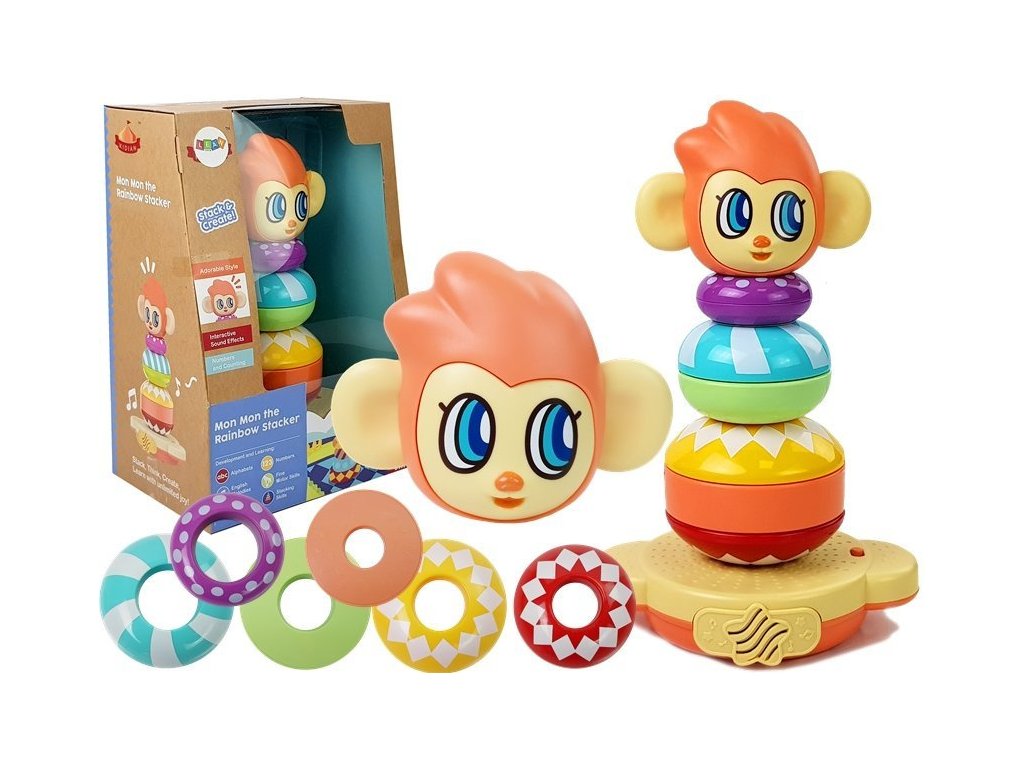 - Vzdělávací pyramida s opičkou a zvuky, učení čísel Roztomilá opička upoutá pozornost vašeho dítěte!