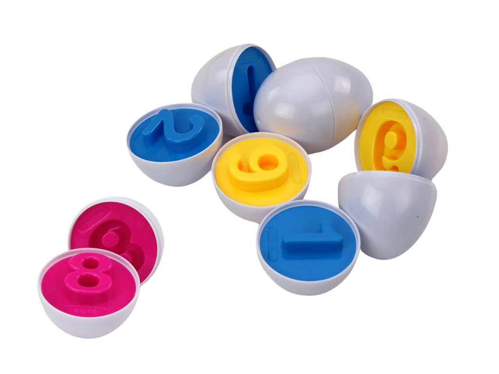 - Sada obsahuje 26 vajec v různých barvách, pod jejichž skořápkami se skrývají čísla, díky nimž se učení stává zábavou plnou vzrušujících objevů