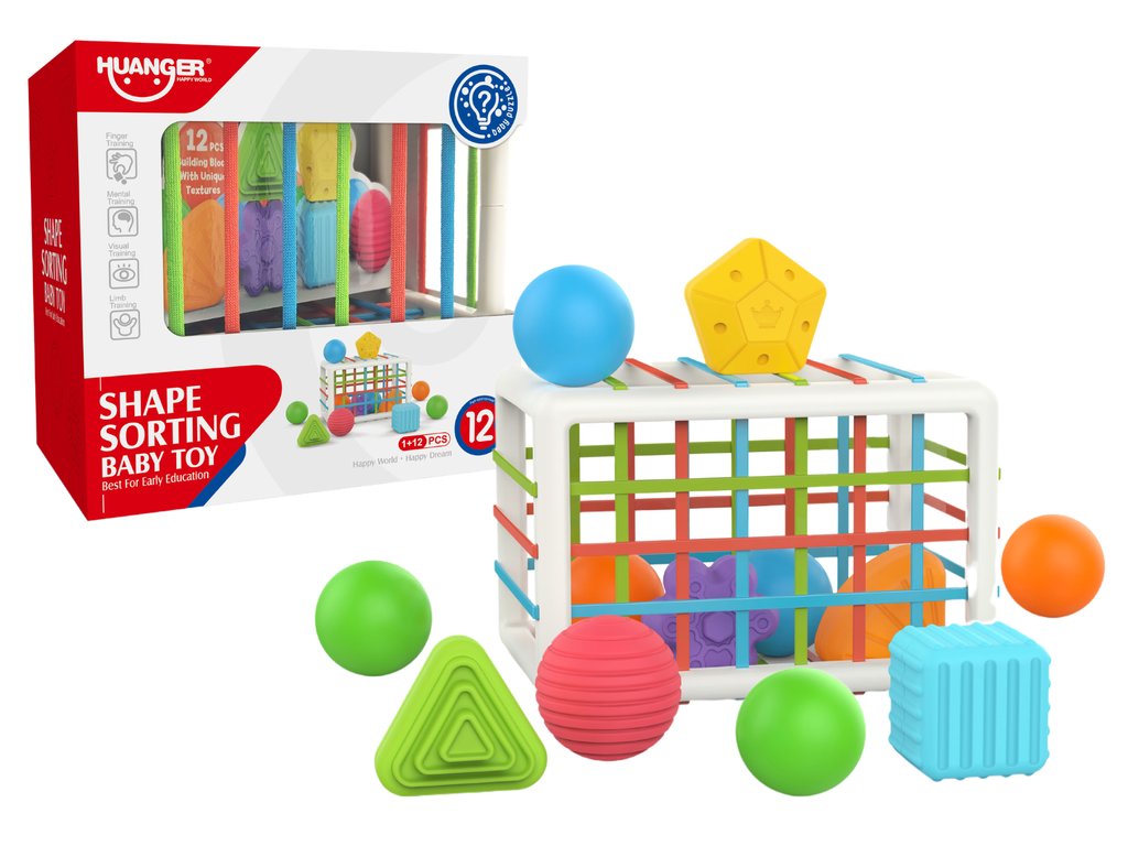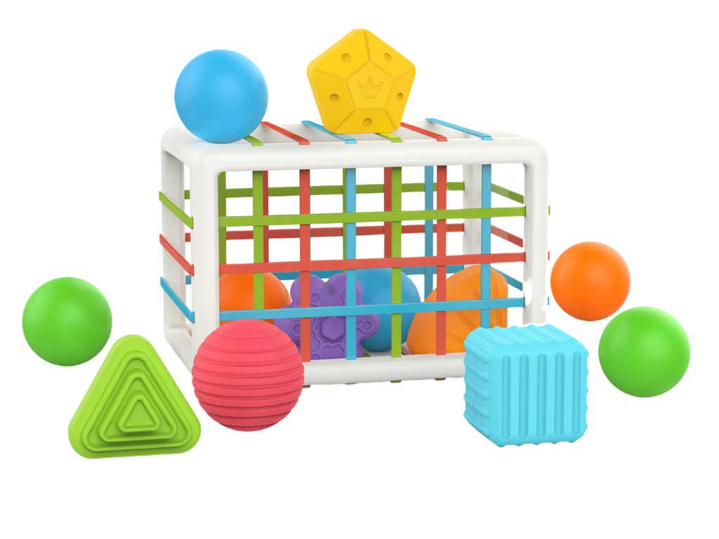 Třídicí hračka Elastická kostka s míčky a figurkami pro kojence V raných fázích života je dětský mozek jako houba, která nasává nové informace Je proto důležité dbát na to, aby se jeho znalosti rozšiřovaly bezpečným a vyváženým způsobem