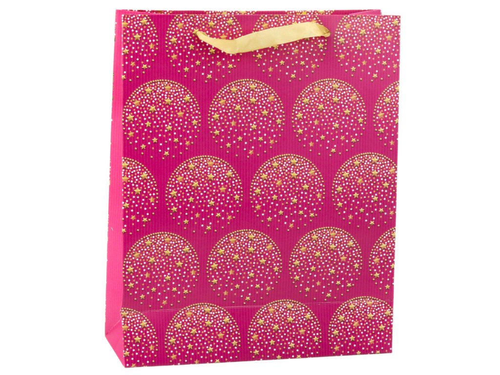 Elegantní Dárková Taška Růžová se Zlatými Hvězdami 32 x 26 x 10 cm