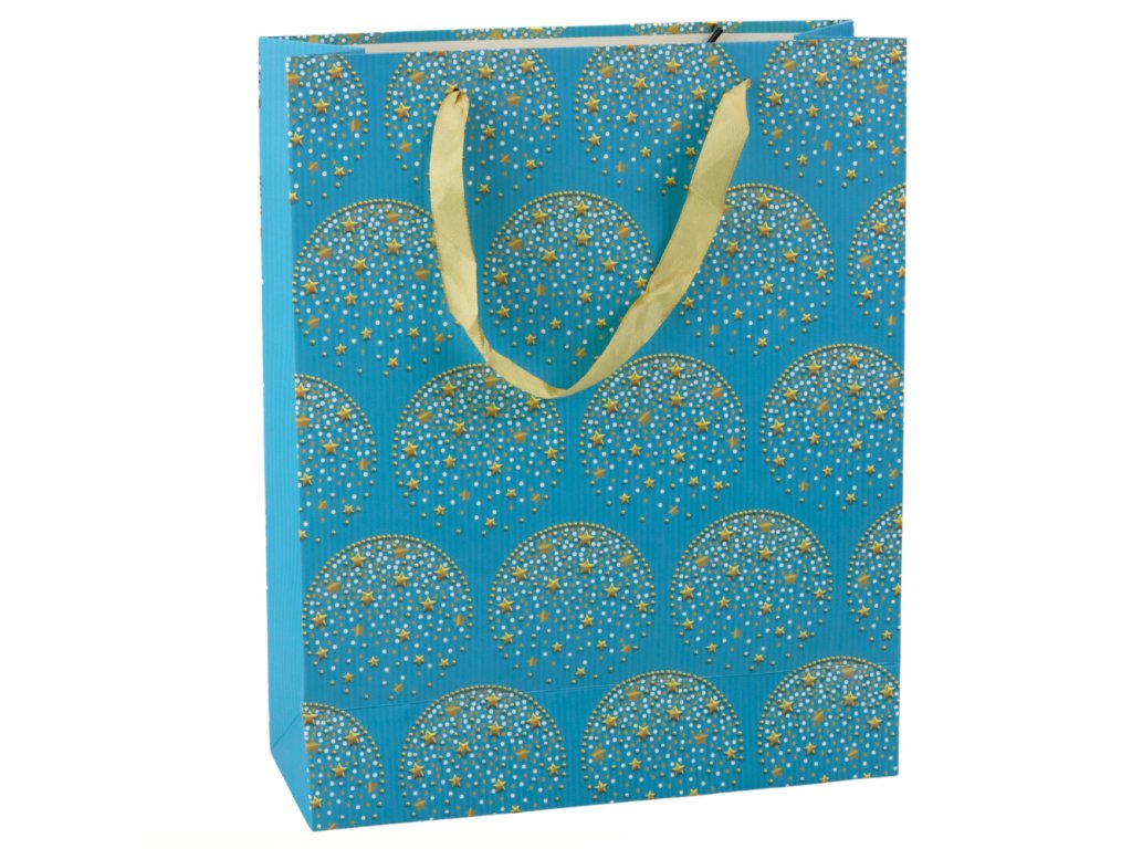 Elegantní Dárková Taška Zlaté Hvězdy Modrá 32 x 26 x 12 cm