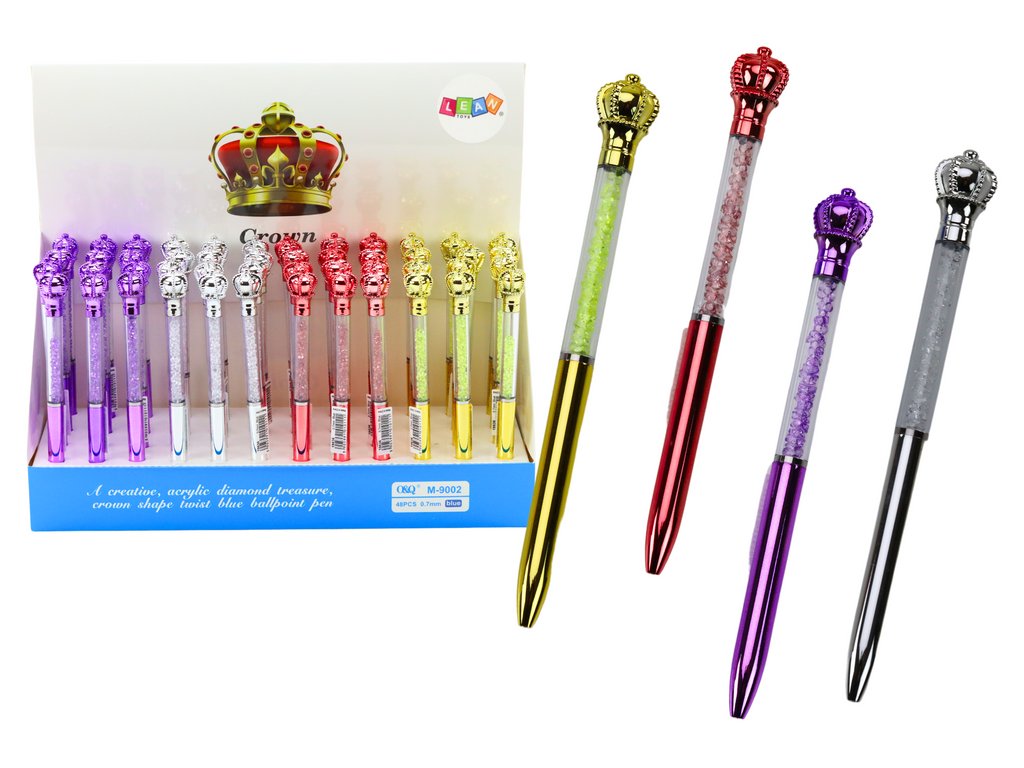 - S modrým inkoustem a designem, který zahrnuje korunku a lesklé drahokamy, toto pero enlivenuje každý podpis či větu