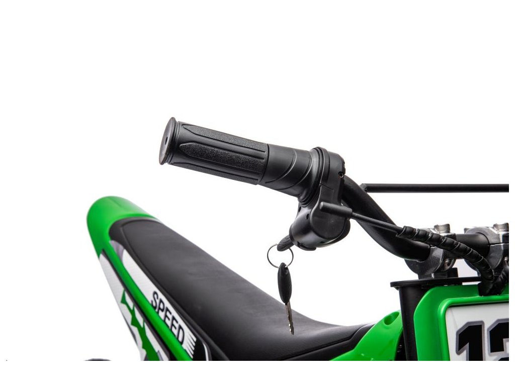 Elektrická krosová motorka A9901 Khaki 36V je ideálním dopravním prostředkem pro malé dobrodruhy Nabízí bezpečné a vzrušující jízdy v terénu, které zaručí spoustu zábavy