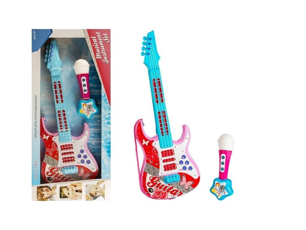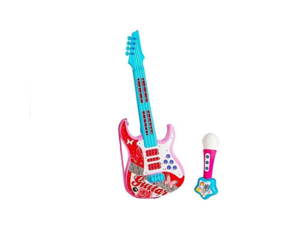 - Elektrická kytara Mikrofon Struny Hračka Růžová V našem sortimentu najdete něco pro každé dítě!