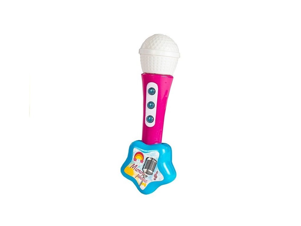 - Růžový popruh a barevný mikrofon s efektními světýlky dodávají pocit reálného vystoupení a bezpečí při hraní