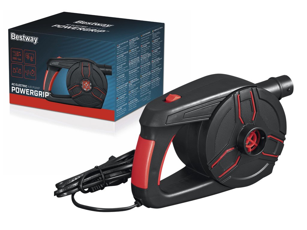 Elektrická pumpa Bestway 62258 je praktické a spolehlivé zařízení, které umožňuje rychlé nafukování i vypouštění vzduchu z různých nafukovacích předmětů od matrací, přes bazény a čluny, až po vodní hračky