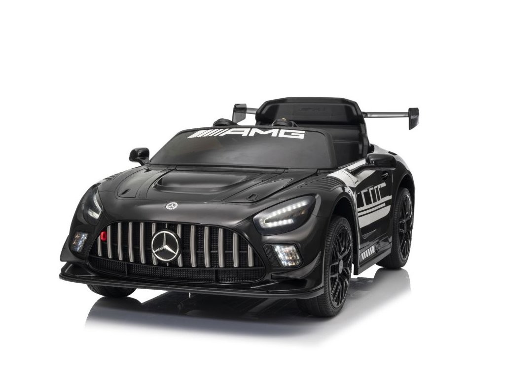 Elektrické auto Mercedes AMG GT3 na akumulátor v elegantním černém provedení je ideální volbou pro malé nadšence aut Toto dětské vozidlo nabízí autentický zážitek z jízdy s řadou výjimečných funkcí