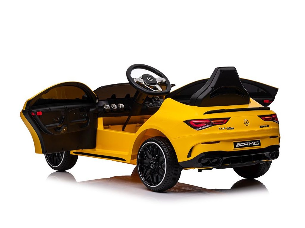 Představujeme vám elektrické auto na akumulátor Mercedes CLA 45s AMG v zářivé žluté barvě, model XMX628 Toto vozidlo je navrženo pro maximální zážitek z jízdy pro vaše děti
