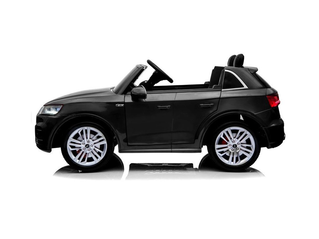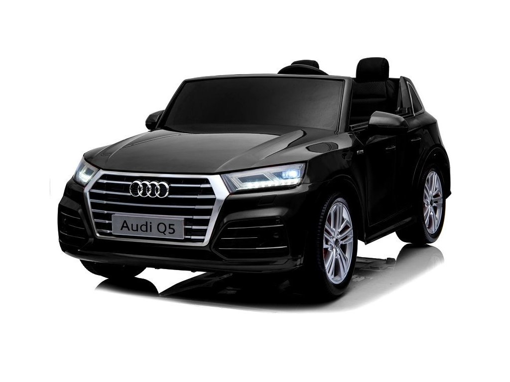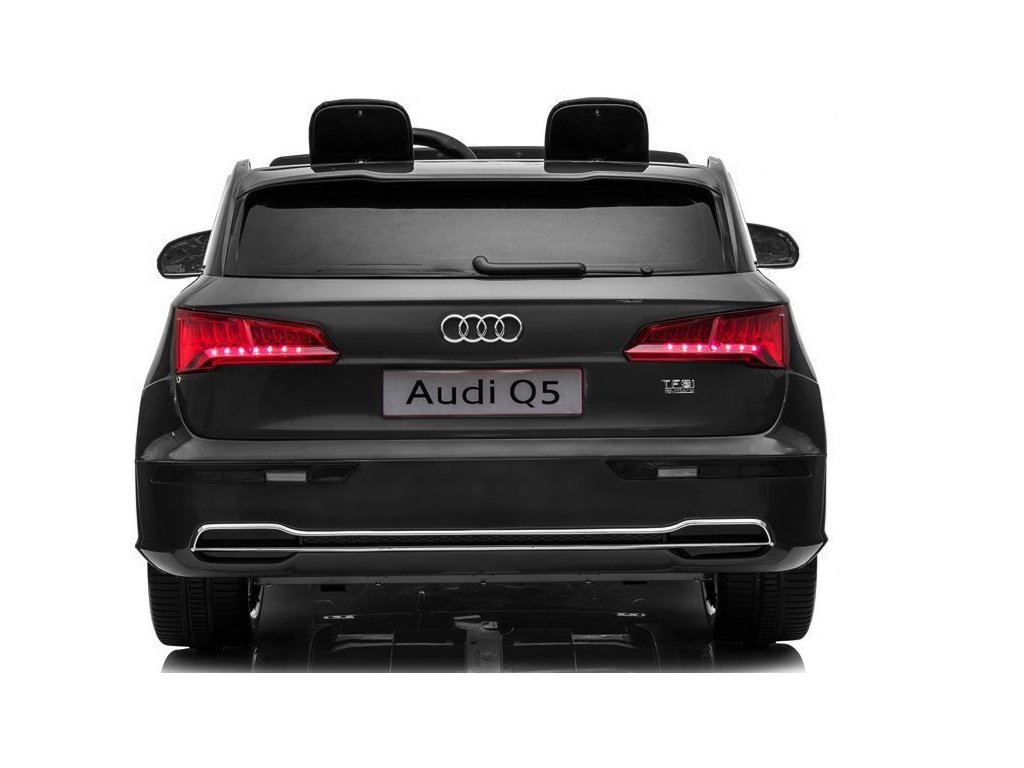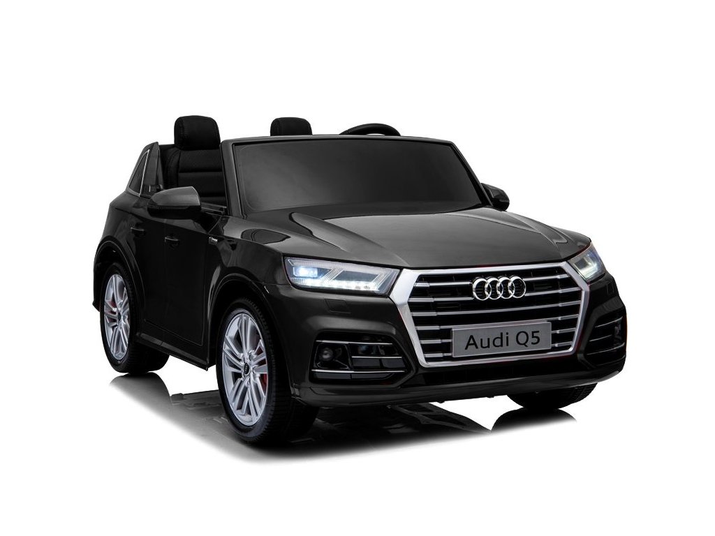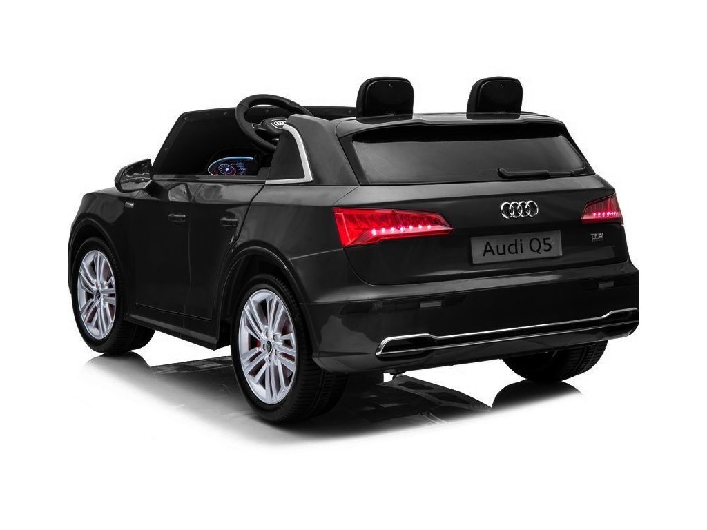 - Klasické černé dvoumístné Audi Q5 pro děti je poháněno akumulátorem a má originální licenci koncernu, díky čemuž je zdobívýrobce v přední a zadní části a na volantu