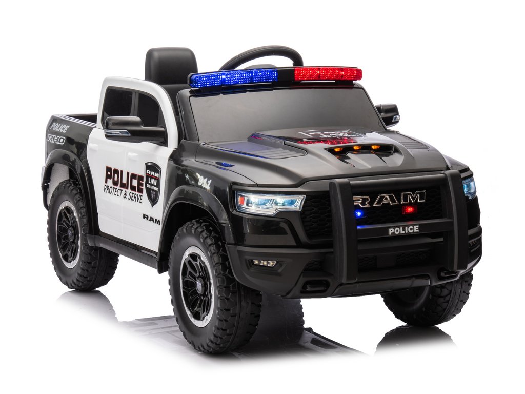Představujeme elektrické vozidlo na akumulátor ZB618P Dodge Ram Policie Černý, ideální pro mladé nadšence do automobilů, kteří chtějí zažít vzrušení z řízení pravého policejního auta Tento model kombinuje atraktivní design a pokročilé funkce, které zaručují hodiny zábavy