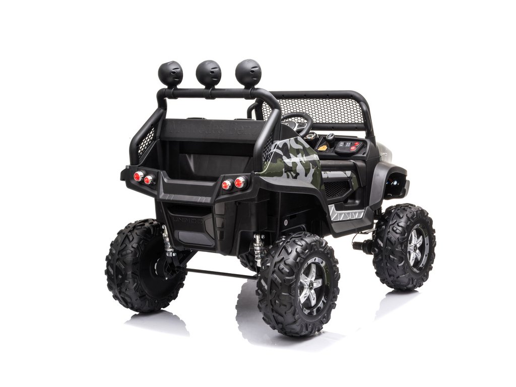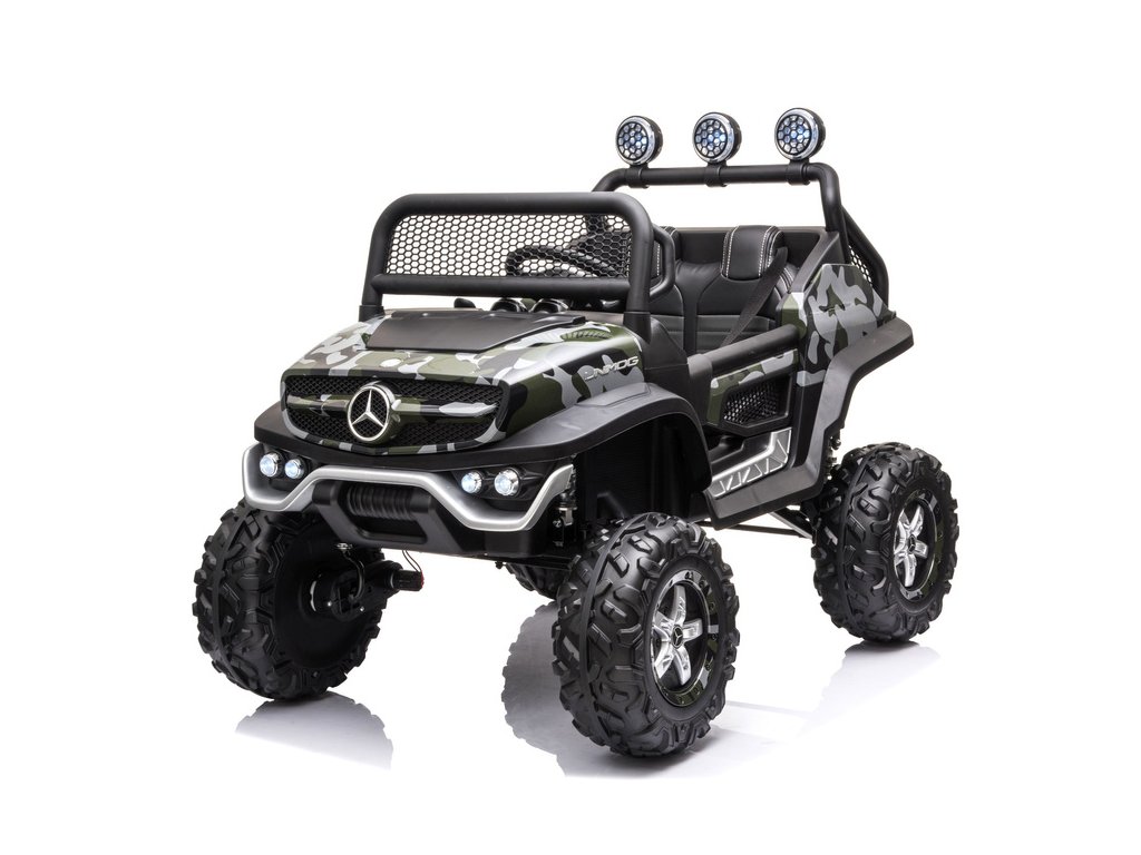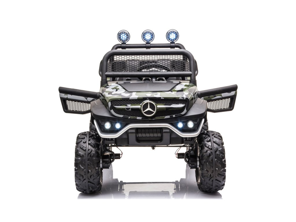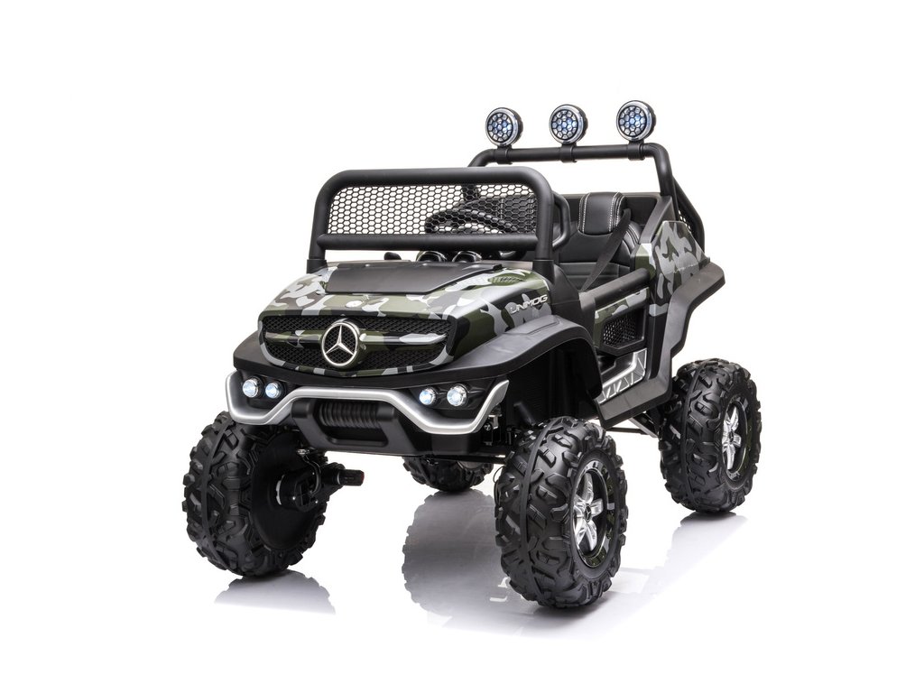 - Elektrické vozidlo Unimog S v maskáčovém laku je ideální volbou pro malé dobrodruhy